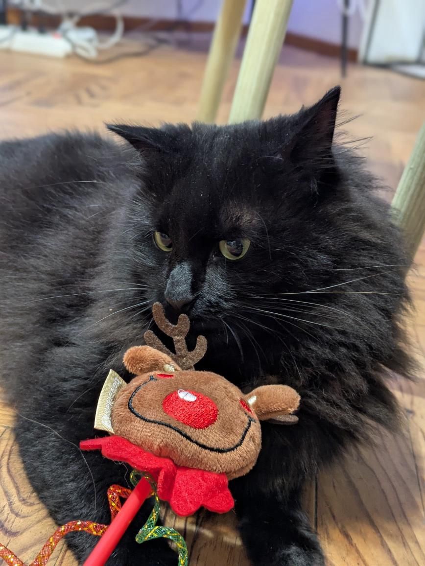Faites vivre la magie de Noël à votre chat avec cette canne à pêche festive décorée d’un adorable renne en peluche !