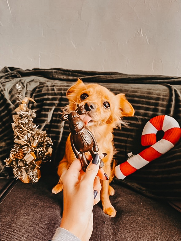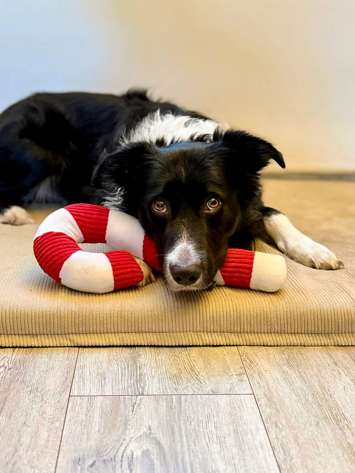 Ajoutez une touche de magie de Noël au panier de votre chien avec la peluche Sucre d’orge !